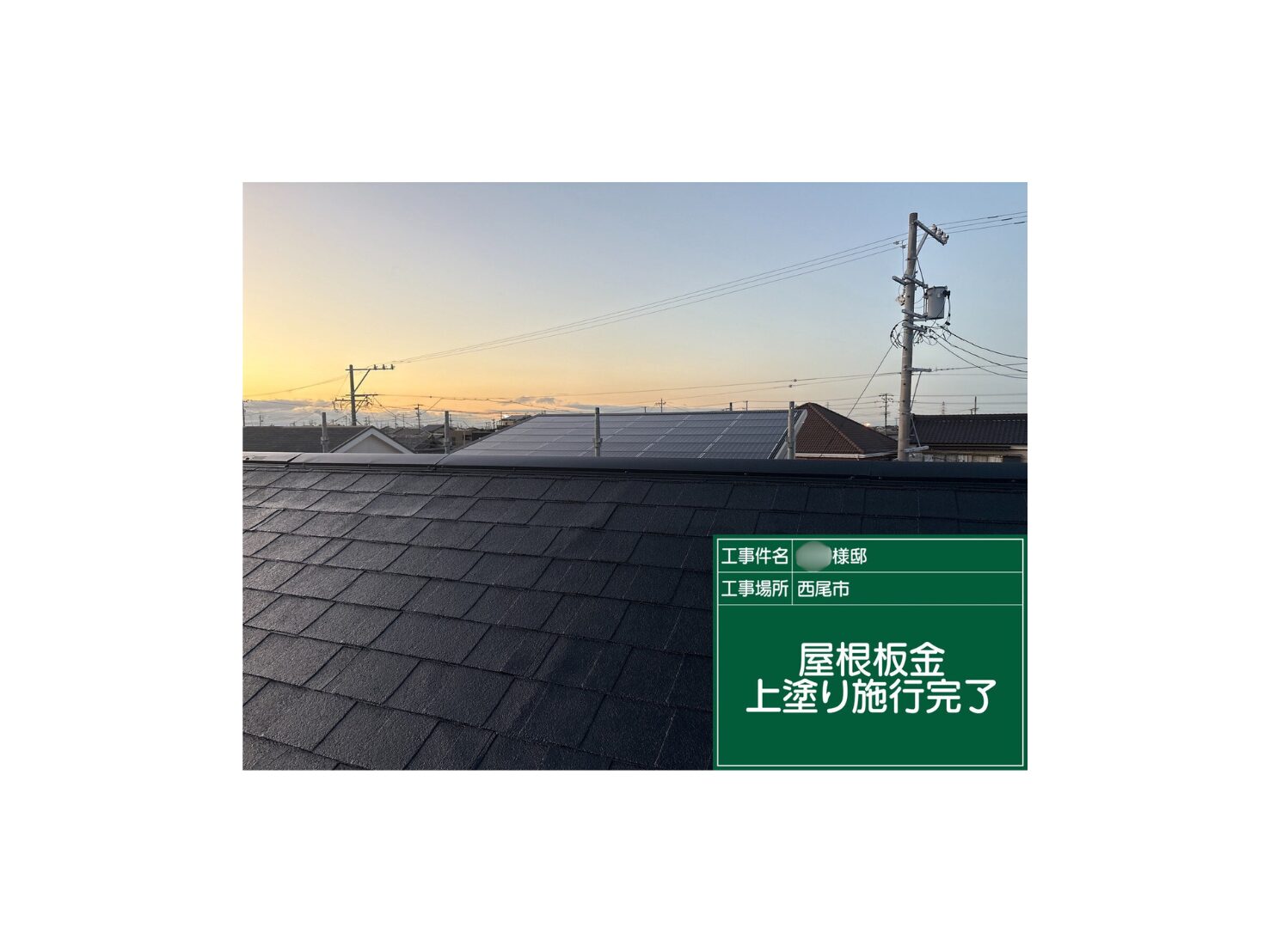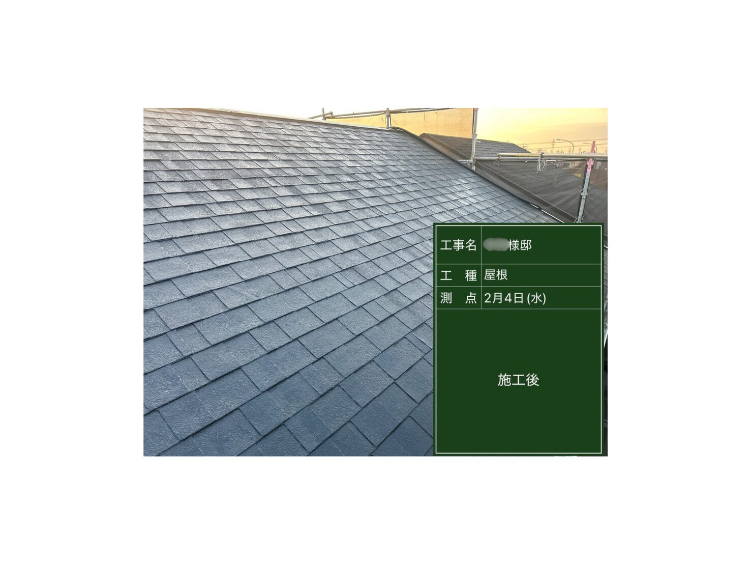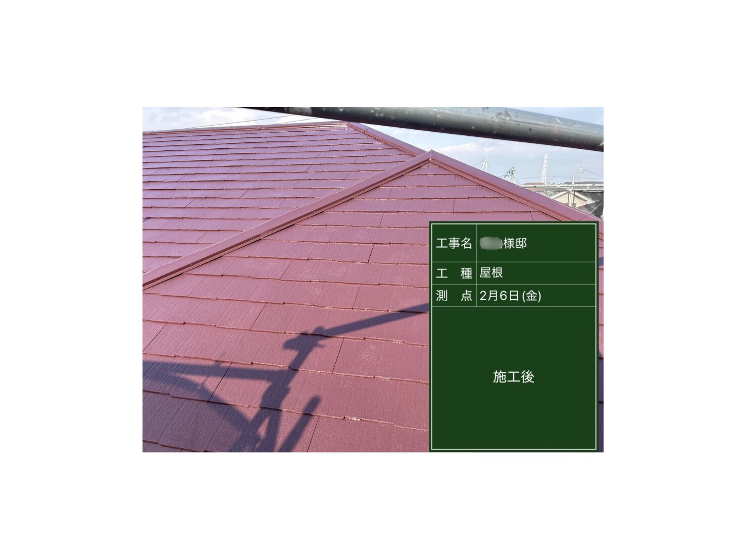 愛知県名古屋市 N様邸 棟板金交換 24m・屋根塗装 78㎡(チタン)・ベランダトップコート 7㎡・物干しラック取付(1箇所) 2025.07.25 外壁・屋根・防水塗装 施工概要 施工箇所 屋根 施工内容 棟板金交換工事 24m・屋根塗装工事 78㎡(チタン)・ベランダトップコート 7㎡・物干しラック取付工事(1箇所) 工事期間 2025年6月11日~2025年7月25日 ご依頼のきっかけ 当社からのお声がけにより 地域 愛知県名古屋市 前の記事を見る 次の記事を見る