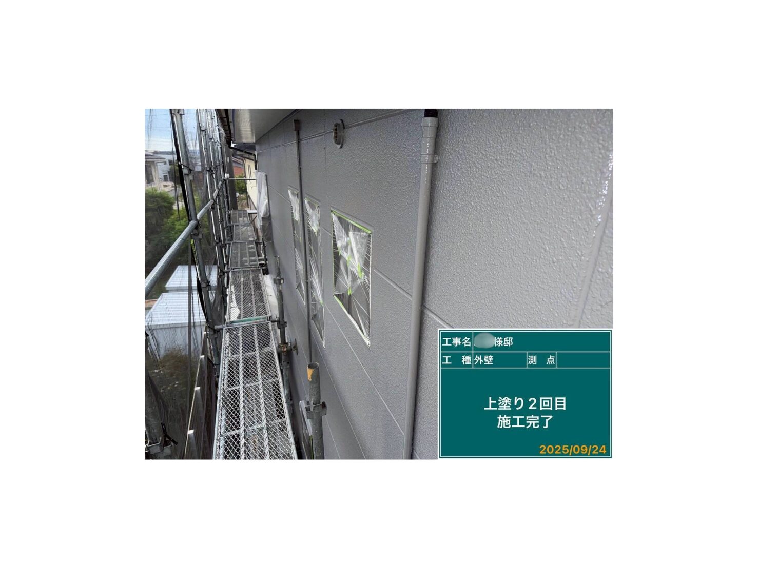 - 棟板金交換工事9m・下り棟板金カバー工事36m・屋根塗装工事133㎡(チタン)・外壁塗装工事172㎡(ゼニス)・目地打ち替え工事・ベランダ塗装工事8㎡・軒天ボード張替え工事・隣接宅予備瓦差替え工事
