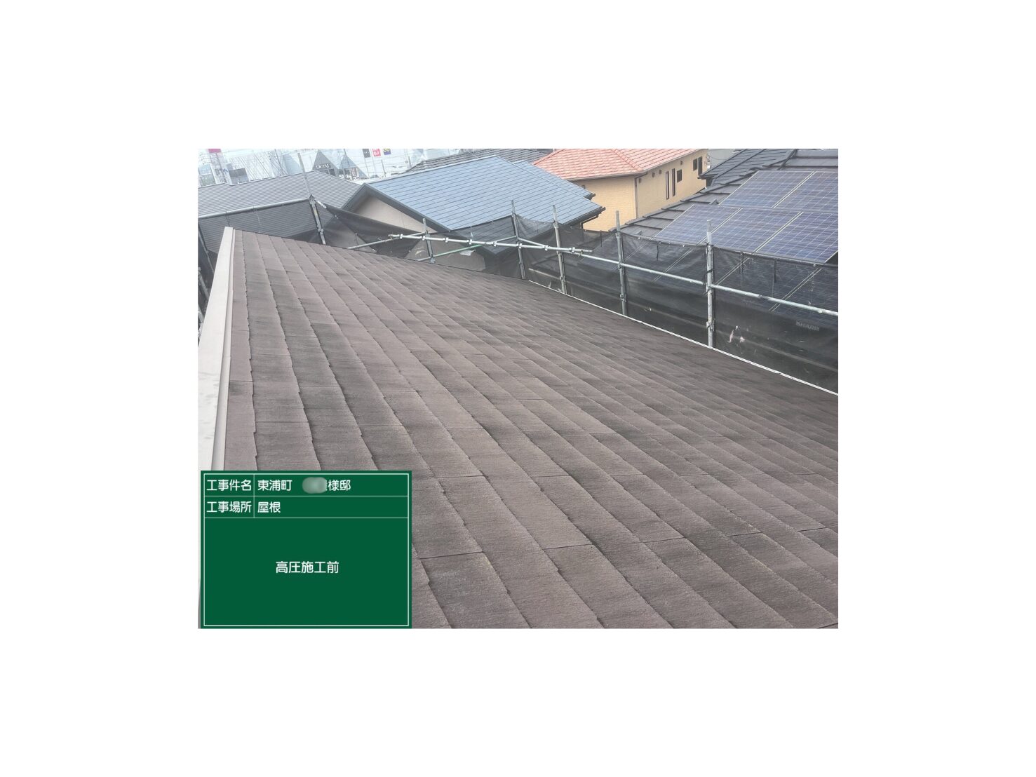 - 棟板金交換工事2m・片棟板金交換工事14m(一部補修箇所)・屋根塗装工事112㎡(チタン)・外壁塗装工事154㎡(レガロ)・ベランダ防水塗装工事 4㎡(1DAY)・目地打ち替え工事