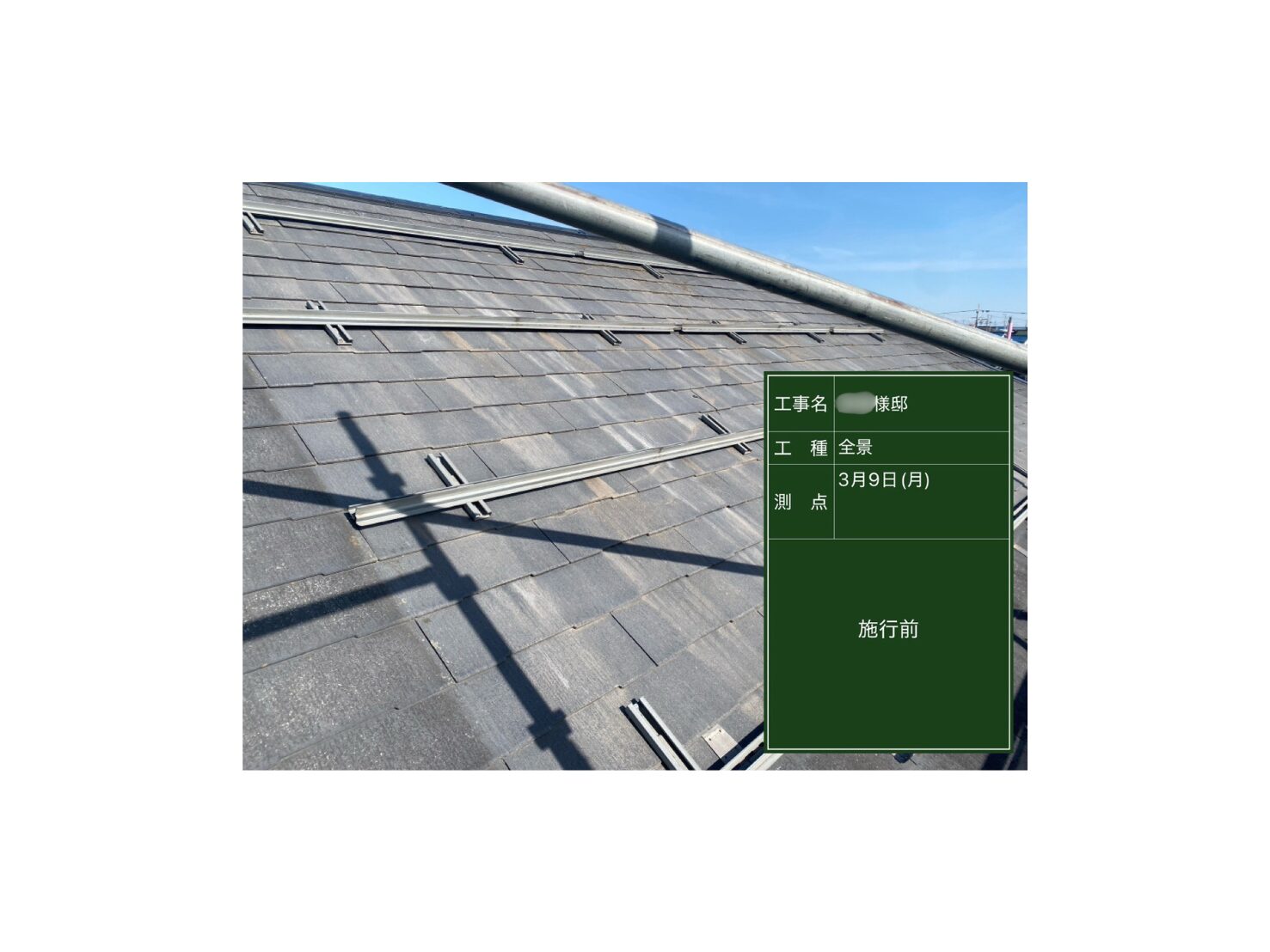 - 棟板金交換工事22m・太陽光脱着工事24枚・屋根塗装工事96㎡(チタン)・外壁塗装工事134㎡(ゼニス)・ベランダ床塗装工事9㎡・外壁サイディング補修工事・目地打ち替え工事