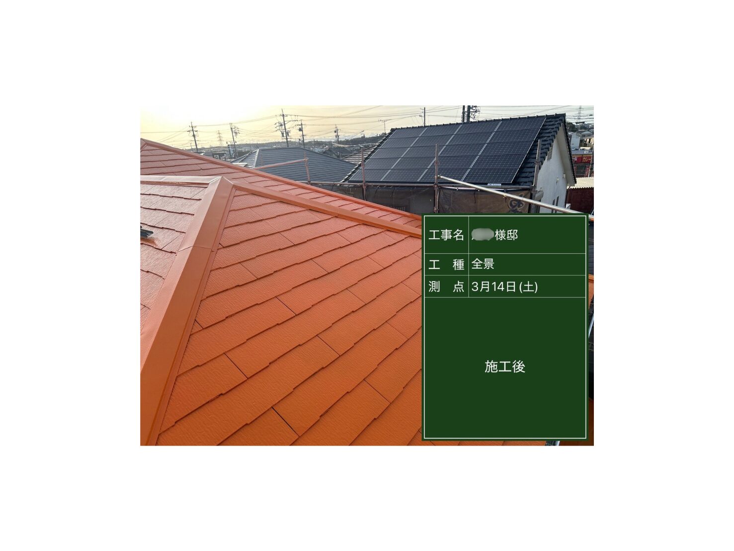 2026.03.18 愛知県碧南市 N様邸 棟瓦乾式工法工事10m・太陽光PF管交換工事・外壁塗装工事144㎡(ウレア)・目地打ち替え又は増し打ち工事・ベランダ床塗装工事11㎡・木造テラス解体撤去工事・接触部樹木枝伐採工事・ポリカ屋根交換工事 5㎡ 外壁・屋根・防水塗装